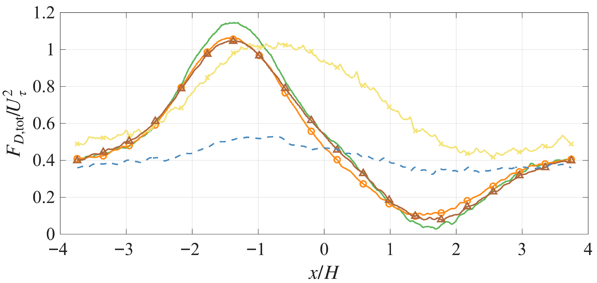 - Modesti, D.; Endrikat, S.; Hutchins, N.; Chung, D. Dispersive stresses in turbulent flow over riblets. J. Fluid Mech. 2021, 917, A55. [Google Scholar] [CrossRef]
