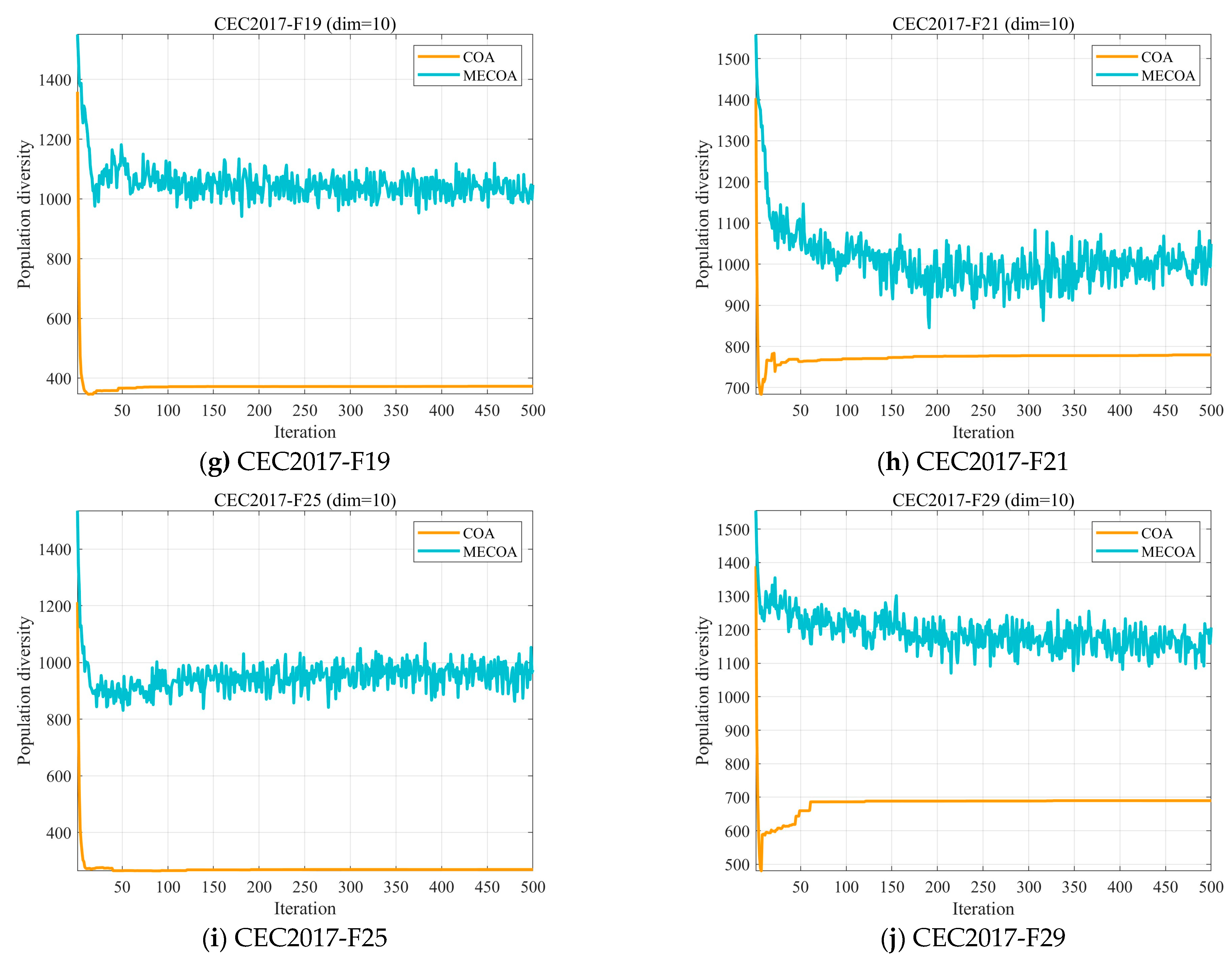 The analysis of the population diversity of MECOA and COA.