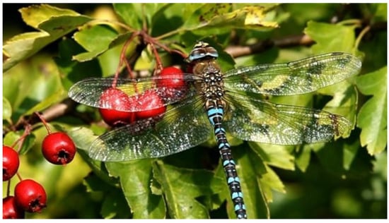 - Dokkum, P.V. Dragonflies: Magnificent Creatures of Water, Air and Land; Yale University Press: New Haven, CT, USA, 2015. [Google Scholar]