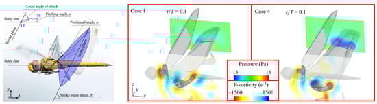 - Noda, R.; Liu, X.; Hefler, C.; Shyy, W.; Qiu, H.H. The interplay of kinematics and aerodynamics in multiple flight modes of a dragonfly. J. Fluid Mech. 2023, 967, A31. [Google Scholar] [CrossRef]