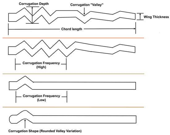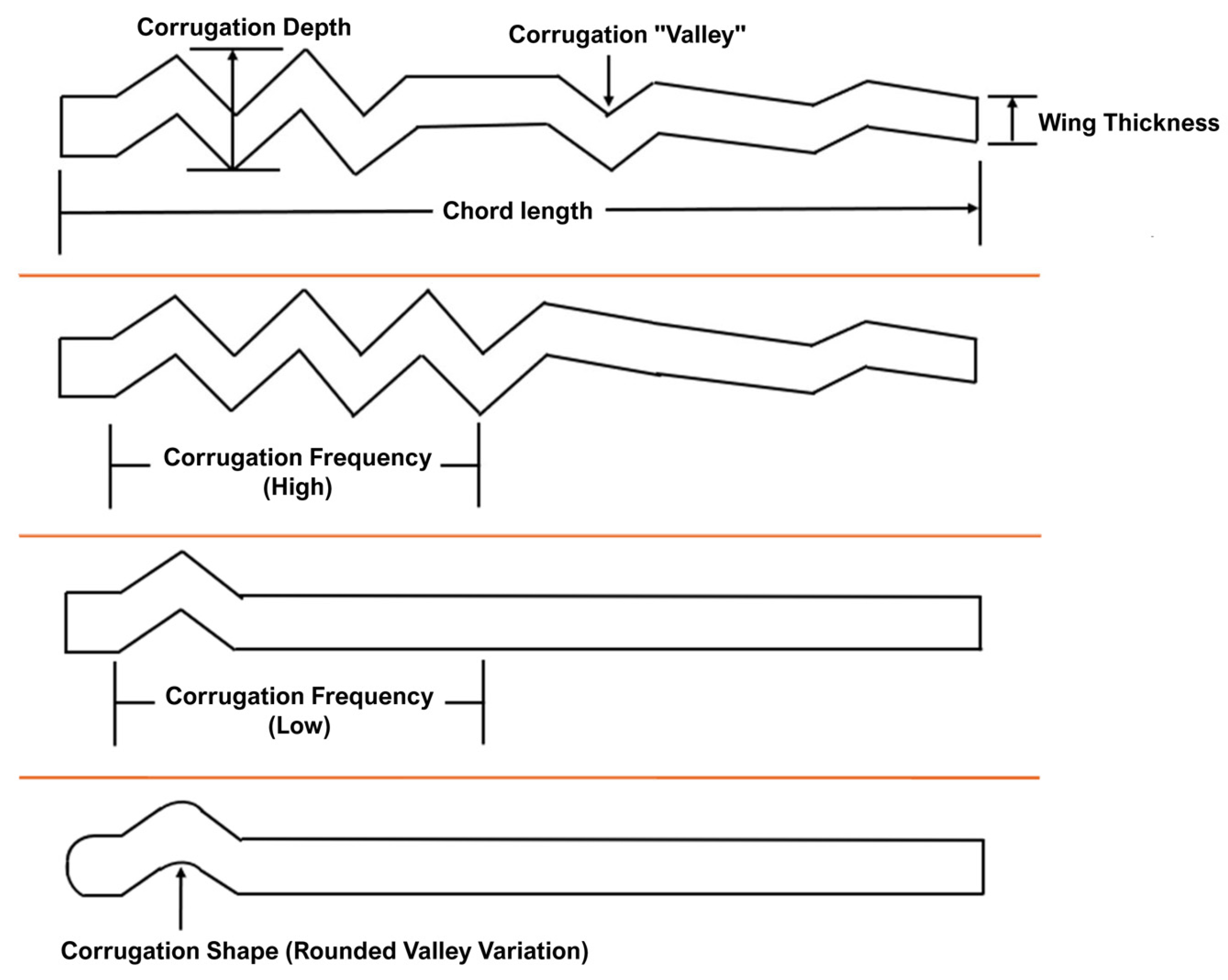 - Lurans, E.; Alhinai, A.; Viswanathan, H. Aerodynamics of Corrugated Wings: Past, Present, and Future. Aerospace 2025, 12, 262. [Google Scholar] [CrossRef]