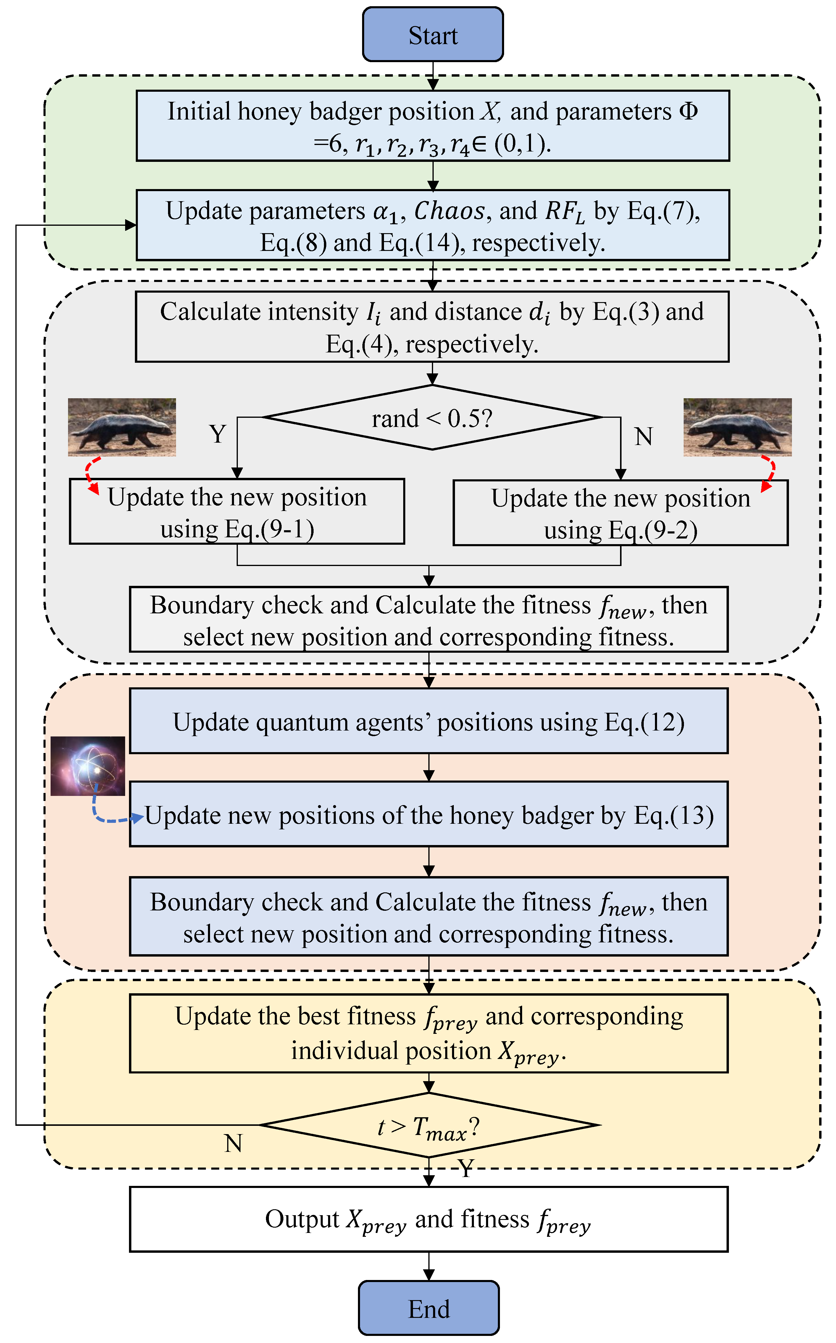 3. The Designed Chaotic Quantum Honey Badger Algorithm