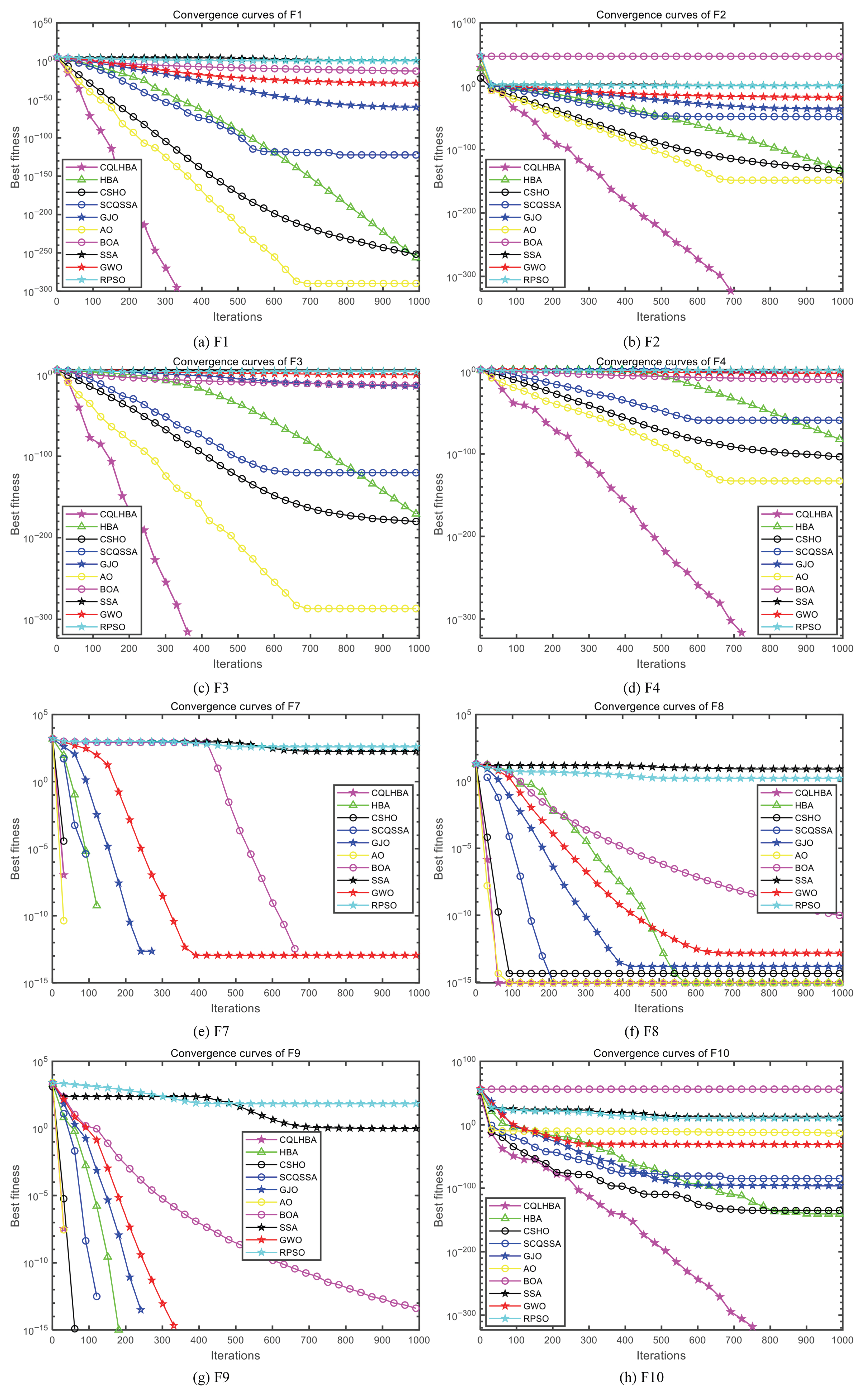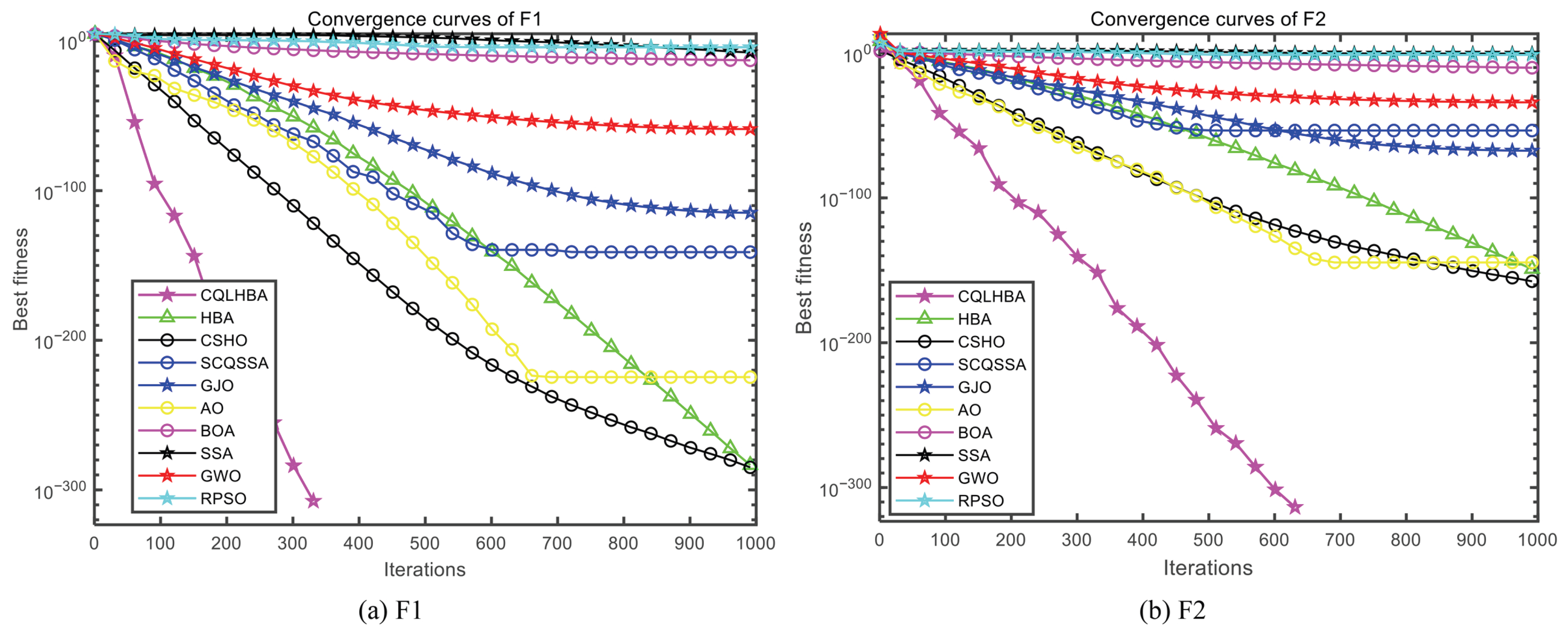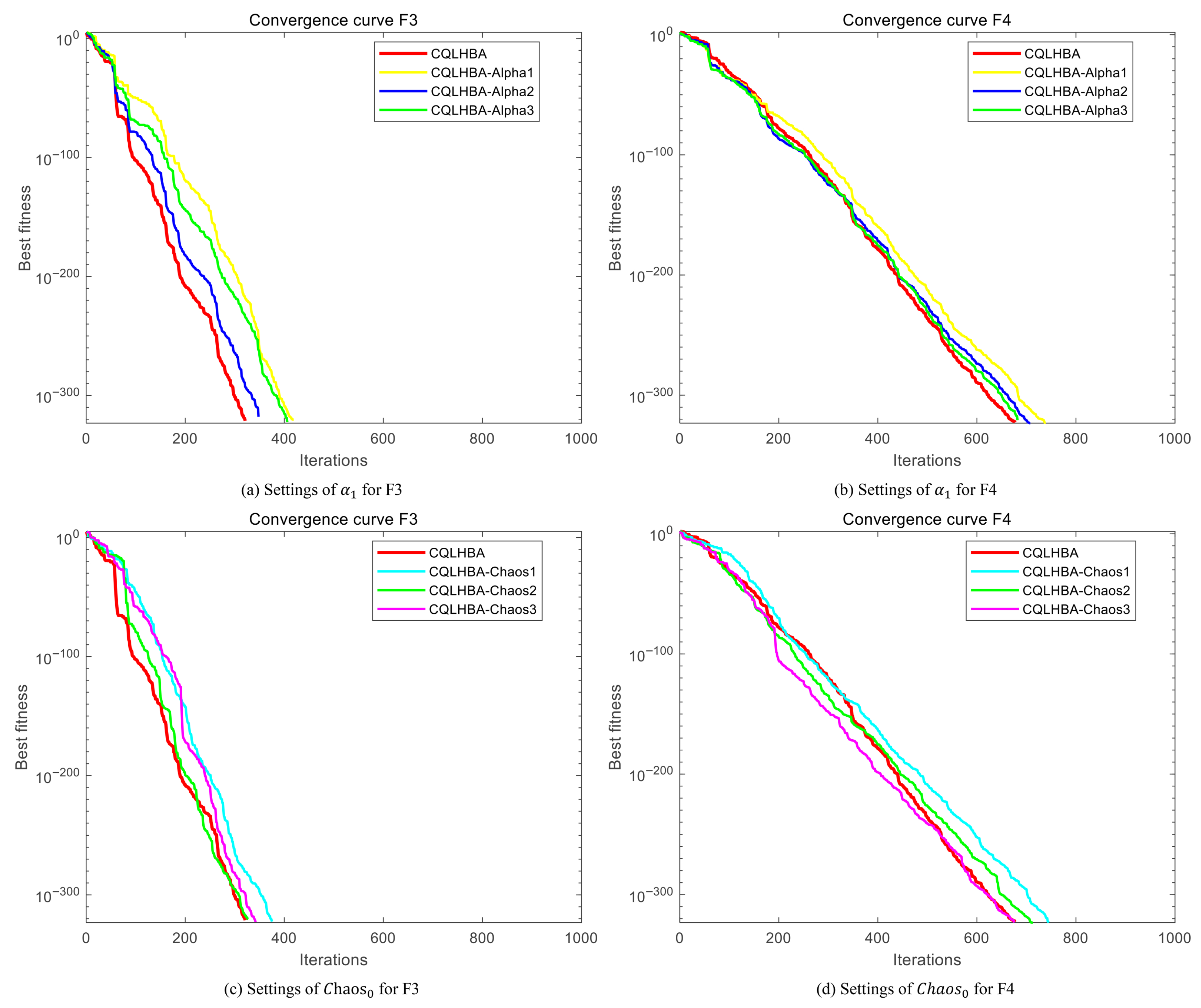 - According to honey badger behaviors in nature, a novel CQLHBA is proposed. A dual-strategy framework assigns chaotic and nonlinear dynamics to leaders and followers for specialized optimization. In addition, a hybrid search operator combines Lévy flight with quantum rotation, enhancing the exploration–precision balance.
