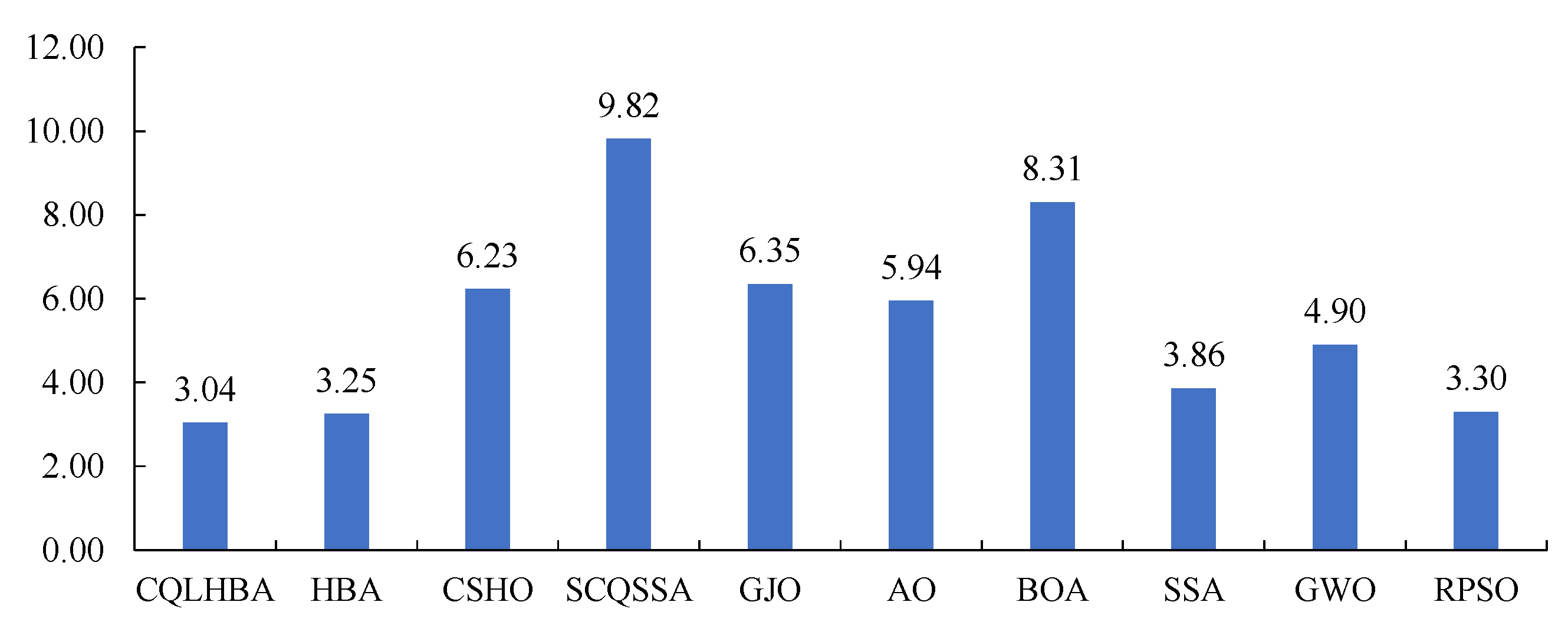 | F10 | Mean | 2.94 × | 8.67 × | 2.90 × | 5.03 × | 4.06 × | 2.33 × | 1.47 × | 1.61 × | 6.73 × | 1.83 × |