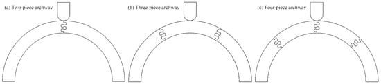 This study investigated whether, although increasing archway segmentation produced lower global stiffness and toughness metrics, there was value in increasing the segmentation of the archway for localization effects to isolate damage to the archway to individual segments. Our results indicate that a four-piece archway (Φ = 45°) never performed better than a three-piece archway (Φ = 60°) in terms of the strain energy scaling factor (i.e., the maximum f for Φ = 45° < minimum f for Φ = 60°).