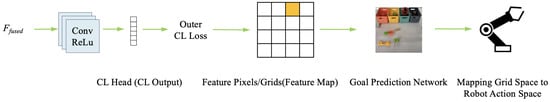 Here, represents the output of the fully connected layer (FCL) head given the model parameters and the query task , while a denotes the corresponding supervised robotic action. The term indicates that the optimization process seeks to find the parameters that minimize the outer loss .