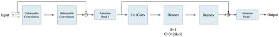 The development of convolutional neural networks (CNNs) has always focused on better adapting to different input data. Traditional convolution operations have fixed kernel sizes and shapes, which limit the model’s ability to handle complex data to some extent. To address this issue, deformable convolution was introduced by Dai et al. [47]. By adding additional offsets to the traditional convolution kernel, the kernel can adaptively adjust its position within a certain range, thus better capturing the geometric changes of the input features. This method has achieved significant results in tasks such as object detection and semantic segmentation.