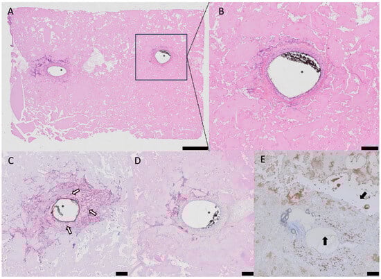 After completing the µCT scans, the constructs were embedded in paraffin and cut into 3 µm slices. Hematoxylin and eosin (H&E), as well as α-smooth muscle actin (α-SMA, Zytomed Systems GmbH, Berlin, Germany) staining, were prepared according to the standard protocols [10,11]. Biocompatibility was assessed with CD68 staining to detect macrophages. After deparaffinization and rehydration, the samples were incubated with pronase (AppliChem GmbH, Darmstadt, Germany) at room temperature for 20 min. Then, the samples were blocked with blocking solution (Zytomed Systems GmbH) and incubated with the primary antibody (anti-CD68, BIO-RAD, Hercules, CA, USA; dilution 1:300) overnight at 4 °C. After washing, the slices were incubated with the secondary antibody (alkaline phosphatase-labeled anti-mouse antibody, for 30 min) and stained with Fast Red TR/Naphthol AS (both Sigma-Aldrich). Counterstaining was performed using hemalum (Merck). The Flag-tag staining was performed using the ZytoChem Plus HRP Polymer system with the recombinant Anti-DDDDK-tag (Abcam, Cambridge, UK, dilution 1:750) as the primary antibody. After washing and peroxide blocking, the secondary antibody Dako REAL EnVision HRP Rabbit/Mouse (Agilent Technologies, Santa Clara, CA, USA) was applied. Counterstaining was also performed with hemalum. For the further analysis, images of the sections were either taken with the Olympus IX81 microscope (Olympus, Hamburg, Germany) using the cellSens Dimension V1.5 software of Olympus or scanned with the PANNORAMIC 250 Flash scanner (3DHISTECH, Budapest, Hungary), and the images were prepared using CaseViewer 2.4 (3DHISTECH).