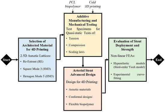 Kladovasilakis, N.; Kyriakidis, I.F.; Tzimtzimis, E.K.; Pechlivani, E.M.; Tsongas, K.; Tzetzis, D. Development of 4D-Printed Arterial Stents Utilizing Bioinspired Architected Auxetic Materials. Biomimetics 2025, 10, 78. https://doi.org/10.3390/biomimetics10020078