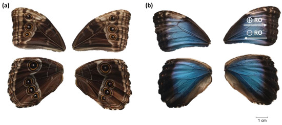 - Kinoshita, S.; Yoshioka, S.; Kawagoe, K. Mechanisms of structural colour in the Morpho butterfly: Cooperation of regularity and irregularity in an iridescent scale. Proc. R. Soc. B Biol. Sci. 2002, 269, 1417–1421. [Google Scholar] [CrossRef] [PubMed]