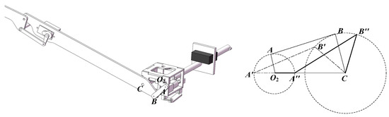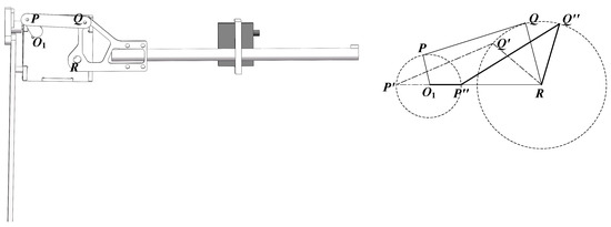 When the crank O1P serves as the driving component and rotates clockwise around point O1 (0, 0) at an angular velocity of w0, traversing an angle of w0t, the crank-rocker mechanism will, based on mechanical principles, reach two extreme positions: O1P’Q’R (limit one) and O1P″Q″R (limit two), as depicted in Figure 11.