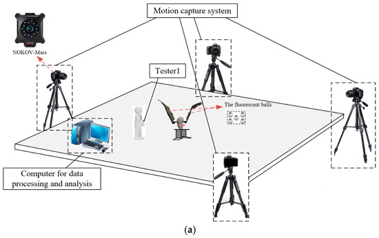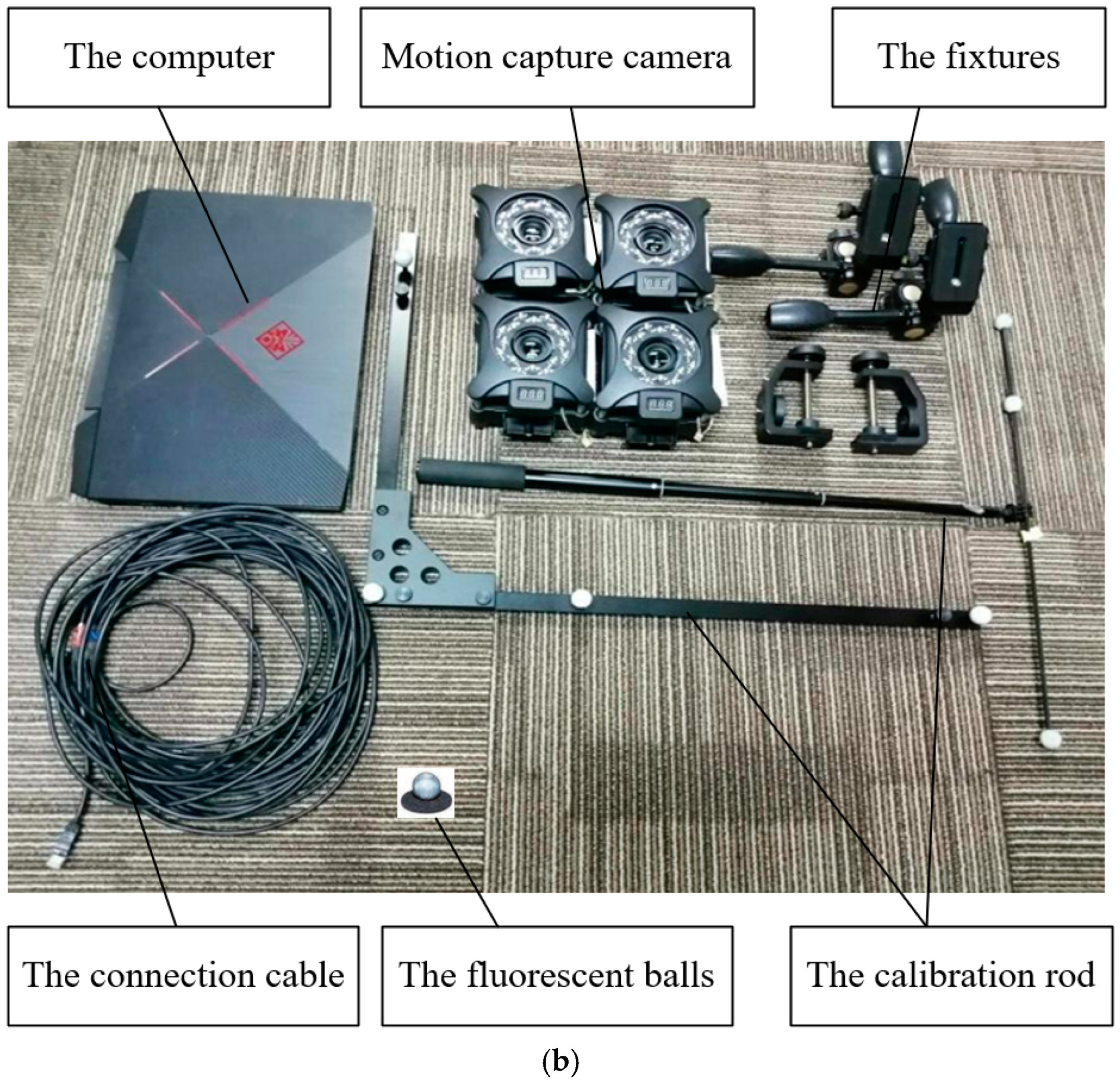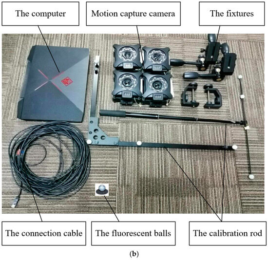 To measure motion parameters of the attitude transformation mechanism, the prototype is positioned within a 5 m × 5 m × 15 m test space. Four infrared cameras (NOKOV-Mars) is installed around the prototype. The measurement data are transmitted to the computer through a wireless network. The main testing equipment is shown in Figure 16.