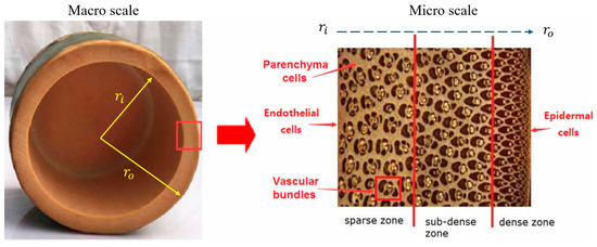 Structural design of bamboo plant detailing its macro- and micro-scale features. Reproduced with permission from Ref. [34].