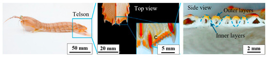 The design of the shrimp’s telson depicting the wavy arrangement of hard and soft layered features. Reproduced with permission from Ref. [41].
