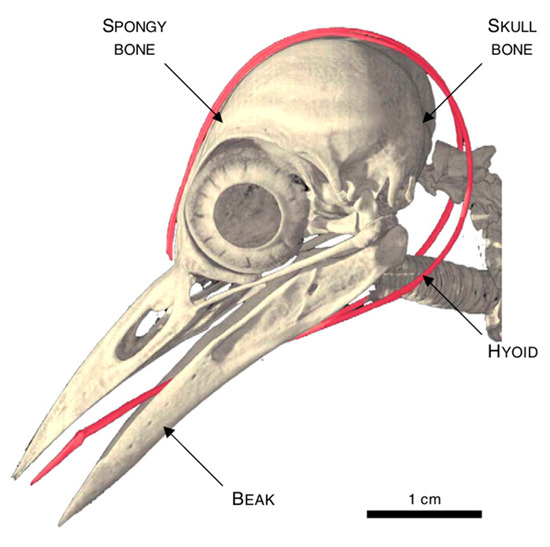 - Jung, J.-Y.; Naleway, S.E.; Yaraghi, N.A.; Herrera, S.; Sherman, V.R.; Bushong, E.A.; Ellisman, M.H.; Kisailus, D.; McKittrick, J. Structural analysis of the tongue and hyoid apparatus in a woodpecker. Acta Biomater. 2016, 37, 1–13. [Google Scholar] [CrossRef]