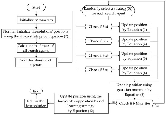 | 2: Initialize the solutions’ positions using the chaos strategy by Equation (7) |