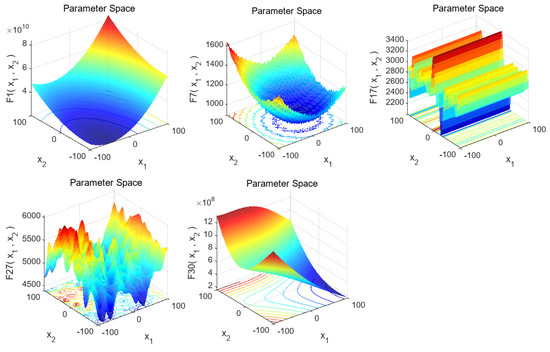 Himmel Blau’s function is a commonly used multimodal function for evaluating optimization algorithm performance. It is mainly applied to analyze non-linear constrained optimization problems. Notably, this function has six non-linear constraints, involves five variables, and its mathematical expression is as follows: