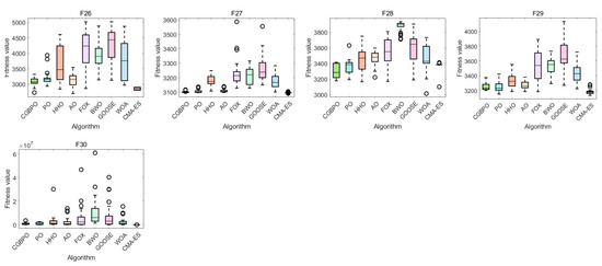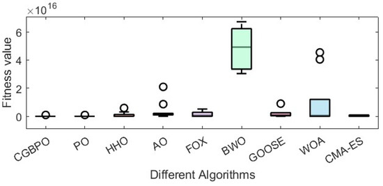 These results clearly prove that CGBPO excelled in solving Himmel Blau’s function optimization problem. It not only had an edge in finding the optimal solution but also surpassed other algorithms in stability and overall performance, making it highly competitive.