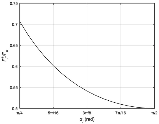 According to Equation (5), The relationship betweenthe dynamic pulley transmission ratio and the tendon rope clamp angle are shown in Figure 7.