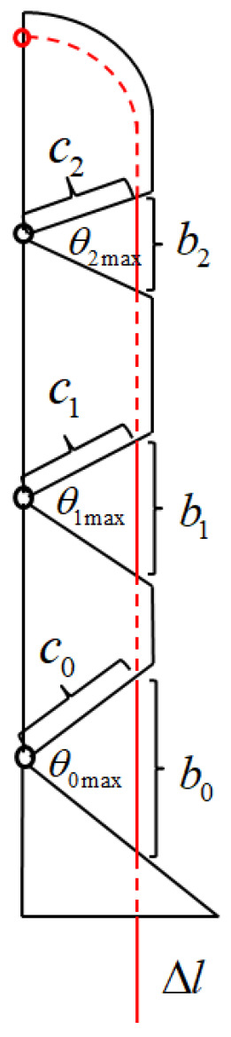 where denotes the length of the exposed tendon rope between the two knuckles in the natural state, denotes the distance between the center of rotation of the joint and the point of contact between the tendon rope and the knuckle, and denotes the maximum bending angle of the joint.