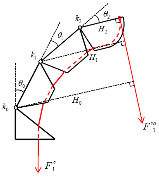 Figure 13 shows the static force equilibrium diagram of the index finger in the bending state, where is the force arm of the tendon rope tension for each joint, which can be obtained according to the geometric relationship: