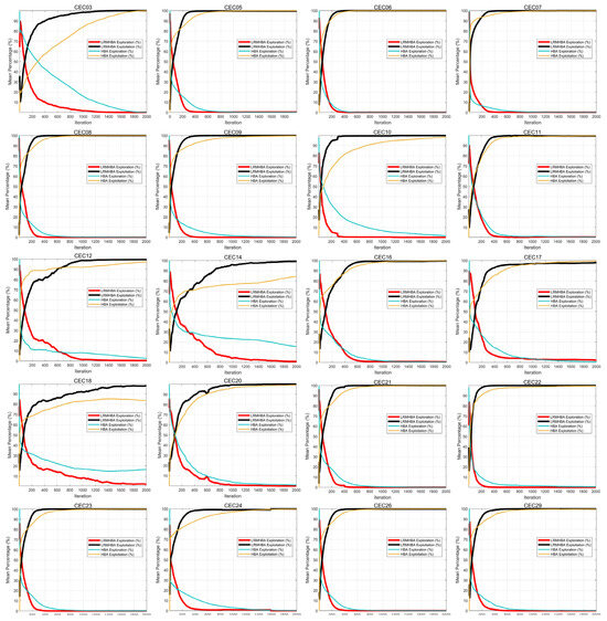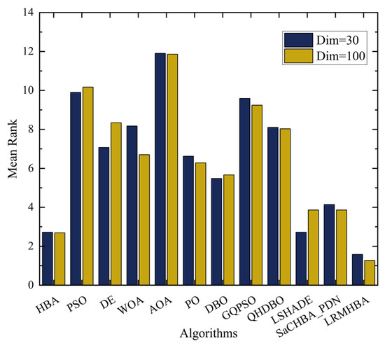 - Comparative performance tests were conducted on the LRMHBA algorithm against various competing algorithms, including highly referenced algorithms and their variants, recently developed high-performance algorithms, the champion algorithm, as well as the original HBA and its variant, using the CEC2017 test suite, with evaluations covering both low-dimensional (30-dimensional) and high-dimensional (100-dimensional) function optimization. Statistical analyses, including the Wilcoxon rank-sum test and Friedman test, along with ablation and exploration-exploitation experiments, were performed to validate the advancements of LRMHBA.