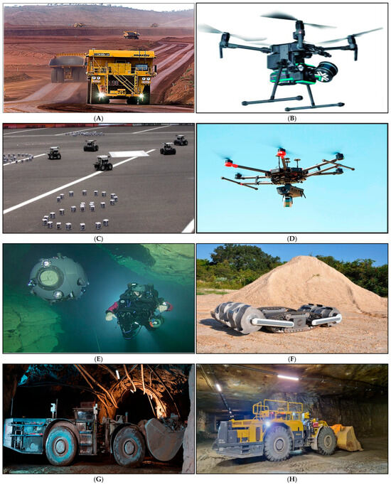 | AutoMine system [Sandvik] | Surface and underground mining (Tele-remote control of loaders and haul trucks) [89,90,91]. | Automates extraction, improves productivity and safety. | High deployment costs [75], requires centralized control infrastructure [92]. |