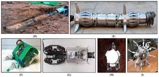 - Liu, Q.; Zhao, J.; Zhu, H.; Wang, G.; McLennan, J.D. Review, classification and structural analysis of downhole robots: Core technology and prospects for application. Robot. Auton. Syst. 2019, 115, 104–120. [Google Scholar] [CrossRef]