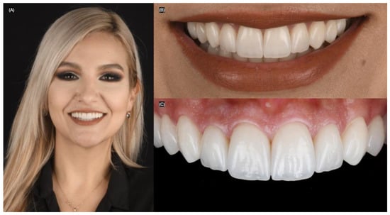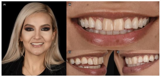A person’s appearance and esthetic qualities play a significant role in shaping their identity and cannot be overlooked. A radiant smile with bright, white teeth, complemented by well-defined lips, can enhance one’s youthful appearance and increase social attractiveness [1]. High-demand procedures in this domain include the application of veneers to achieve a “Hollywood smile”, orthodontic interventions for dental alignment, and orthognathic surgery for addressing severe dentofacial discrepancies that cannot be corrected through orthodontics alone. These procedures may involve corrective bone surgeries to modify jaw mobility [2,3]. Research has demonstrated a strong link between a beautiful smile and enhanced self-esteem [4]. A recent study examined the impact of facial components on smile attractiveness in 60 individuals. For men, the smile accounted for 49% of attractiveness, with eyes and hair contributing 22% and 6%, respectively. In women, the smile was responsible for 69% of the variation in attractiveness. The study highlighted a strong link between facial and smile attractiveness [5]. When individuals are satisfied with their smile, they tend to have a more positive self-image, which can lead to higher self-worth and a more hopeful perspective on life. Dental veneers are a conservative treatment and have been shown to fulfill patients’ esthetic demands.