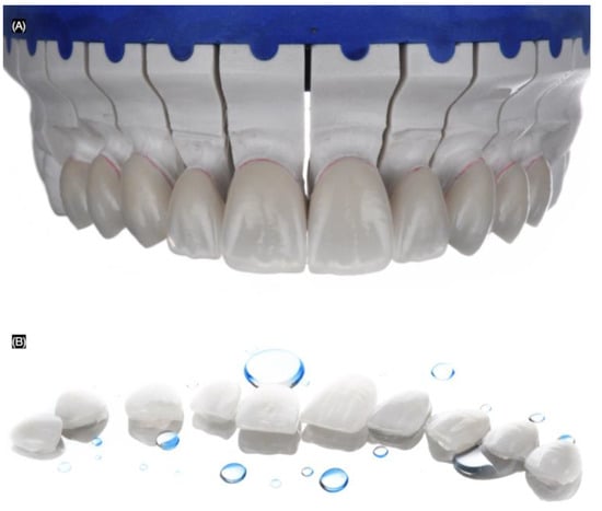 - Zarone, F.; Ferrari, M.; Mangano, F.G.; Leone, R.; Sorrentino, R. “Digitally Oriented Materials”: Focus on Lithium Disilicate Ceramics. Int. J. Dent. 2016, 2016, 9840594. [Google Scholar] [CrossRef] [PubMed] [PubMed Central]