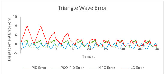 Graph showing displacement error of the PAM under each control scheme during the triangle wave experiment.