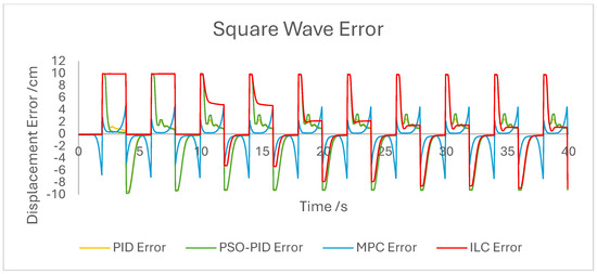 Graph showing displacement error of the PAM under each control scheme during the square wave experiment.