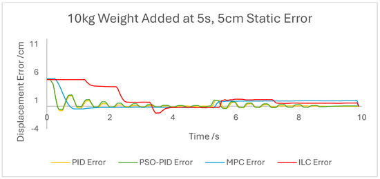 Graph showing displacement error of the PAM under each control scheme during the 10 kg added weight experiment.