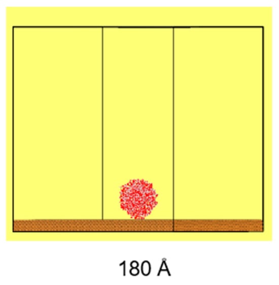 The size of the substrate is 180 Å × 180 Å × 50 Å (X × Y × Z), while the size of the simulation domain is set at 180 Å × 180 Å × 200 Å (X × Y × Z). The simulation domain in the Z direction is set to avoid non-physical interactions and phenomena caused by the simulation cycle, which ensures that the droplet above is not affected by the substrate.