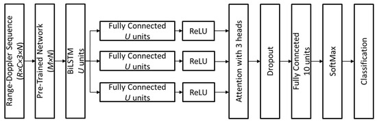 The proposed deep learning architecture is designed to process range–Doppler sequences and effectively recognize human activities by leveraging spatial and temporal feature representations. The network consists of the following key components: