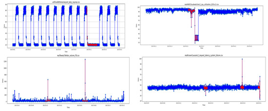 - Lavin, A.; Ahmad, S. Evaluating real-time anomaly detection algorithms—The numenta anomaly benchmark. In Proceedings of the 2015 IEEE 14th International Conference on Machine Learning and Applications (icmla), Miami, FL, USA, 9–11 December 2015; pp. 38–44. [Google Scholar]