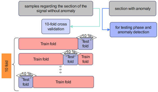 According to Figure 6, 10-fold cross-validation is performed using the training sections of the signal without an anomaly. The test stage can predict the anomalies based on the obtained weights of the training step. The proposed model in Algorithm 1 has been examined in detail.