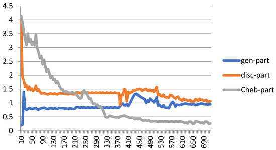Figure 7 shows the performance of the proposed Cheb-MA based on the loss functions according to the Chebyshev convolution part, generator, and discriminator section of the network. According to this figure, the SGD optimizer has a learning rate of 0.0001 and weight decay of 4 × (10−4), considering cross-entropy for the first part of the network and the modified total loss according to Algorithm 1 for the adversarial part of the proposed network. Also, to clarify the performance improvement in the adversarial generative network, we have compared the loss function of the proposed discriminator with the classical discriminator in Figure 8. As is clear, the proposed improved discriminator has a more stable performance compared to its counterpart. Figure 9 demonstrates the fluctuations of the loss function corresponding to the MA network architecture for unsupervised anomaly detection. The GNN and LSTM loss function variations can be seen in Figure 10. The GNN consists of three layers of graph convolution networks, and the LSTM network includes four stacked layers of LSTM with 64 units for the first three layers and 1 unit for the last LSTM layer.