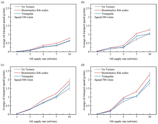 3.2.1. Effect of Piston Velocity and Oil Supply Rate on Lubricating Oil Transport Characteristics Under Continuous Interface Condition