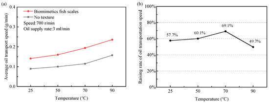 3.1.2. Effect of Oil Temperature on Interface Oil Transport at Biomimetic Fish Scale Texture