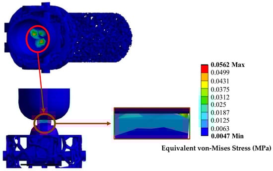 In Figure 13, the equivalent stress contours are presented after dynamic testing.