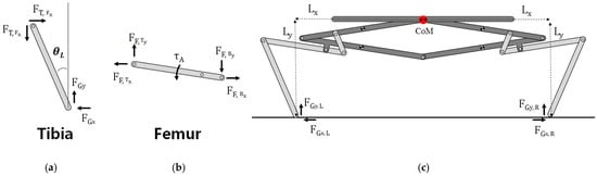 Lx and Ly are the lengths between the center of mass and the contact point of the tibia and ground, and FG,y R and FGy,L are the ground reaction force of the left and right leg in the y direction, respectively.