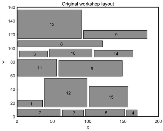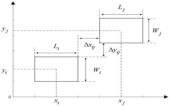 - Hypothesis of the shape of the working unit. Simplify the shape of each working unit to a rectangle, and stipulate that each rectangular edge is parallel to the X–axis and Y–axis. This assumption does not take into account the shapes of working units such as circles, which may lead to the waste of space.
