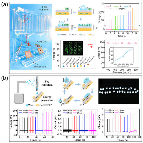- Zhang, S.; Chi, M.; Mo, J.; Liu, T.; Liu, Y.; Fu, Q.; Wang, J.; Luo, B.; Qin, Y.; Wang, S.; et al. Bioinspired Asymmetric Amphiphilic Surface for Triboelectric Enhanced Efficient Water Harvesting. Nat. Commun. 2022, 13, 4168. [Google Scholar] [CrossRef] [PubMed]
