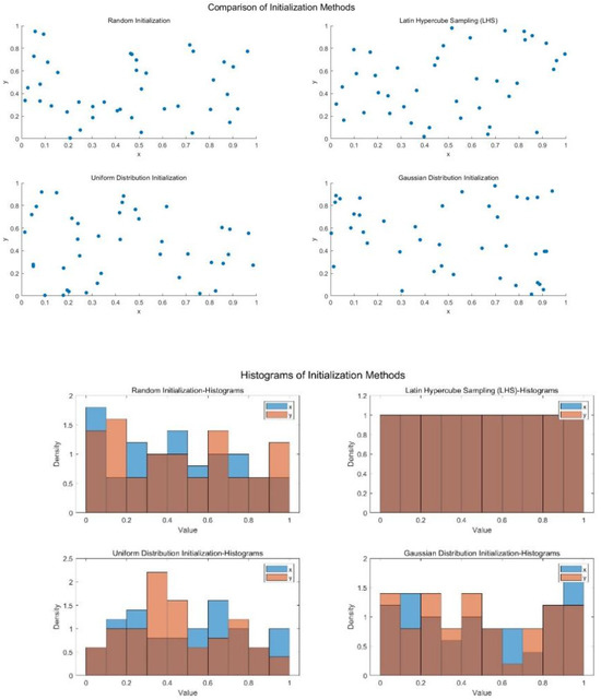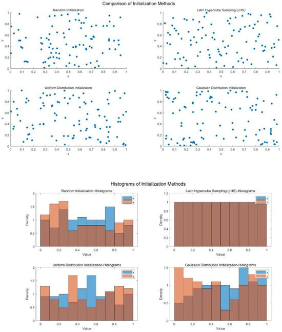 The initial population is generated in a -dimensional space with a population size of . By incorporating Latin Hypercube Sampling (LHS), the population initialization strategy for MSSA is developed. The specific process is as follows: