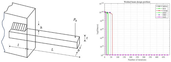 From Figure 10 and Table 7, it can be observed that MSSA outperforms the other five algorithms in terms of both mean value and standard deviation, and exhibits faster convergence speed. This observation suggests that MSSA has a competitive advantage in addressing the welded beam design problem.