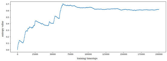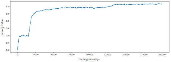 Information entropy is generally equivalent to the inherent uncertainty of a variable. As the agent gains a thorough understanding of the environment and develops a clearer state-action policy through continuous exploration, the uncertainty of subsequent actions will decrease. If learning in a system reflects a reduction in uncertainty, it should also result in a decrease in the agent’s perceived information entropy. In this work, we utilize information entropy as a convergence metric to assess the stabilization of the successor representation model during training. If the information entropy value tends toward stability, the SR model is considered converged, indicating a greater degree of self-organization and a reliability of the system. The convergence information entropy is computed as Equation (10):