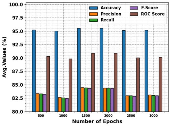 Furthermore, in Figure 8, the ROC curves obtained by the DBODL-MSLIS algorithm outperformed the classifiers of various labels at multiple epochs. It provides a comprehensive understanding of the trade-off between True positive rate (TPR) and False positive rate (FPR) at various exposure threshold rates and epochs.