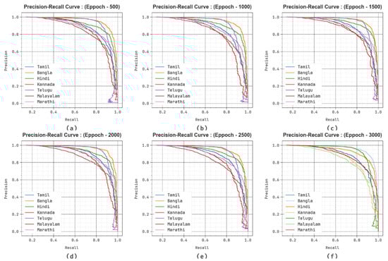 PR curve of DBODL-MSLIS technique (a–f) Epochs 500–3000.