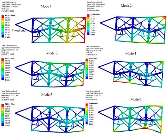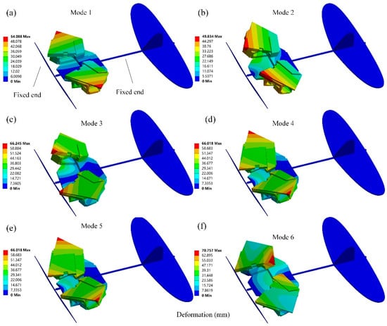 The first six modal shapes of the six-panel deployable mechanism in the unfolded state.